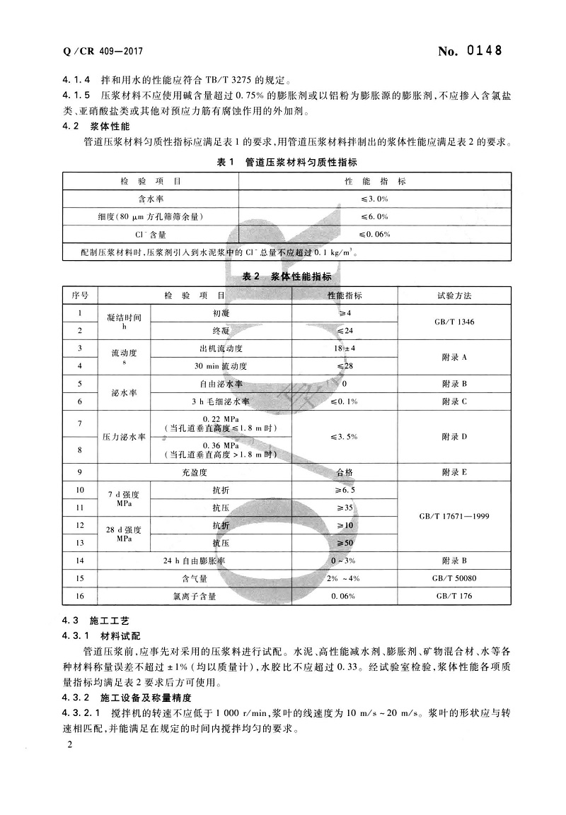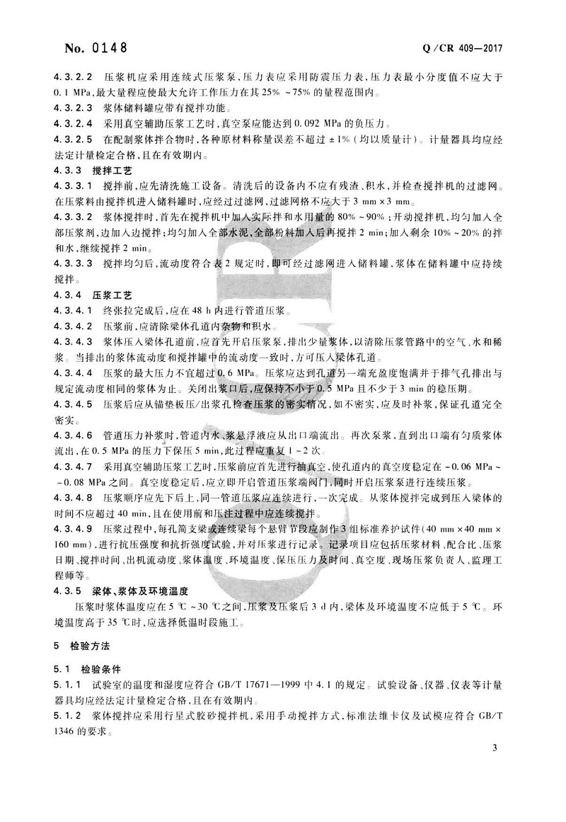 鐵路后張法預應力混凝土梁管道壓漿技術條件