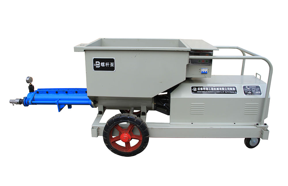 該泵結(jié)構(gòu)新穎、構(gòu)思獨(dú)特;避免了灌注稠漿較困難的不足,使用安全方便、效率高。本機(jī)主要由電動(dòng)機(jī)減速器、輸漿體、增壓蝸桿、增壓定子、測壓、料斗、電控系統(tǒng)等組成,當(dāng)用于噴護(hù)時(shí),還包括噴射器,其特點(diǎn)如下: