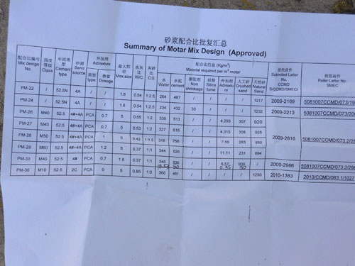 近日,蘇丹羅塞雷斯電站施工方傳回信息,對我公司生產(chǎn)的GS20E灌漿泵在電站大壩加固灌漿施工中,全面達(dá)到設(shè)計(jì)施工要求予以充分的肯定。下圖為大壩加固灌漿施工及沙漿配比單。
